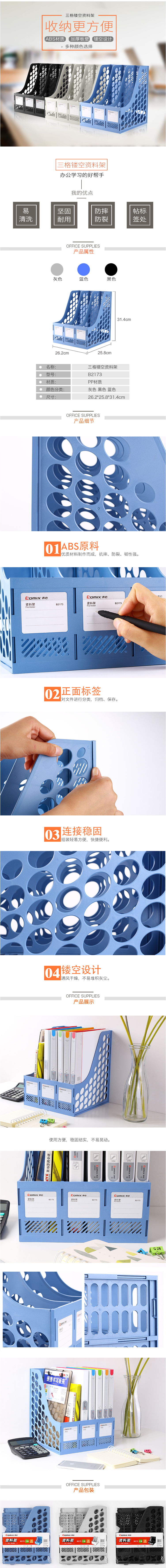 商品名称:【满49包邮】齐心 B2173 经济型资料架/文件框 三格文件栏文件架