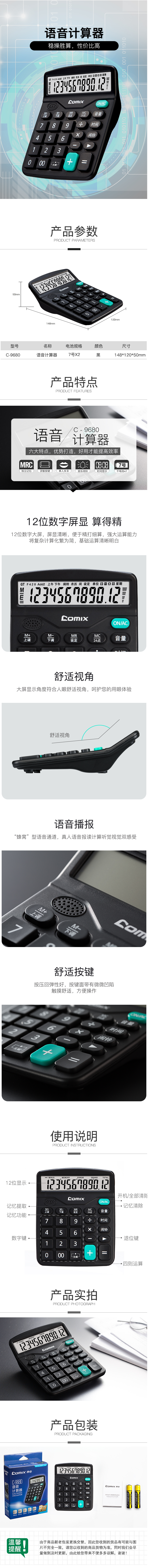 商品名称:【满49包邮】齐心 C-9680 语音计算器 灰色