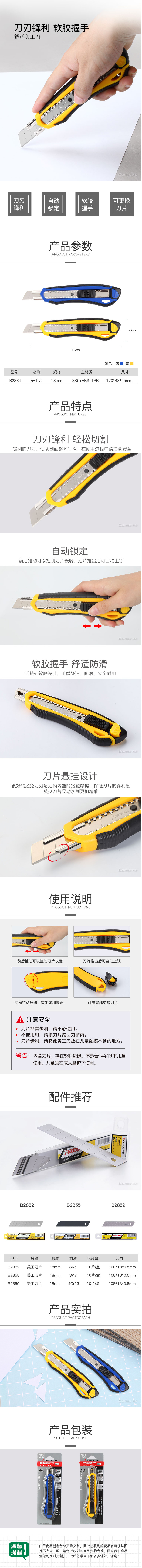 商品名称:【满49包邮】齐心 B2834 舒适自锁美工刀 大号18mm软胶护手带金属护套