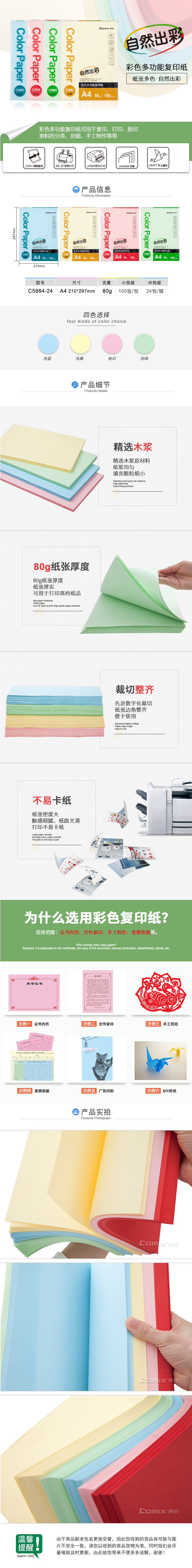 商品名称:【满49包邮】齐心 C6084-24 彩色多功能 复印纸 打印纸 A4 80克 24包