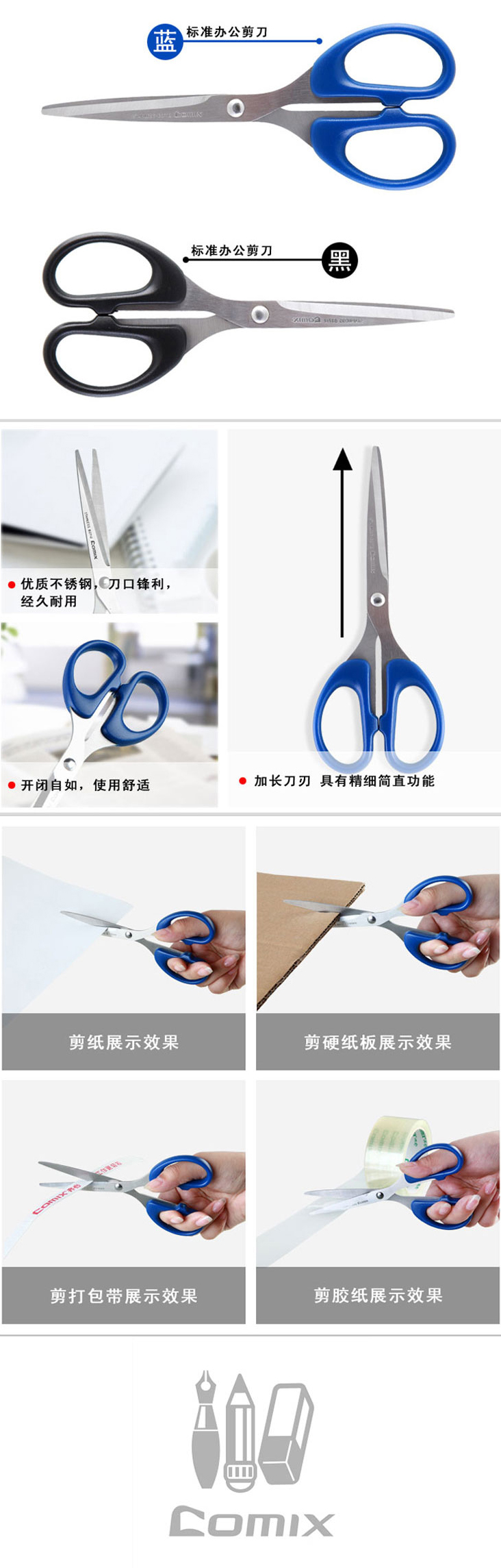 商品名称:【满49包邮】齐心 B2712 小号办公剪刀 163mm