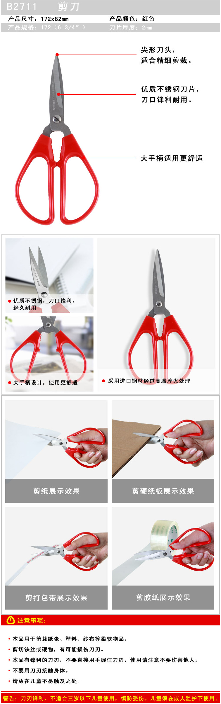 商品名称:【满49包邮】齐心 B2711 中号大手柄剪刀 172mm