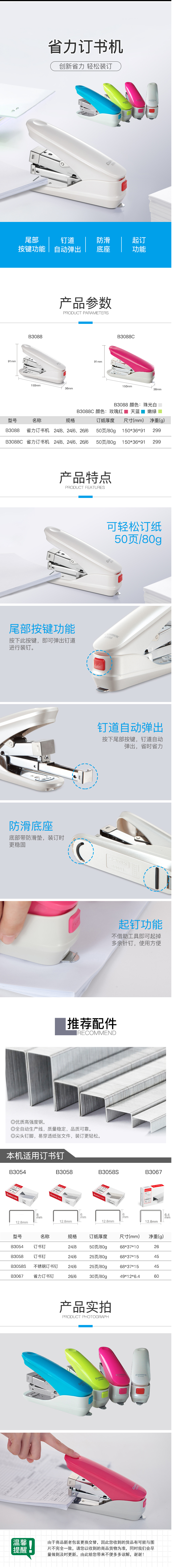 商品名称:【满49包邮】齐心 B3088C 省力订书机