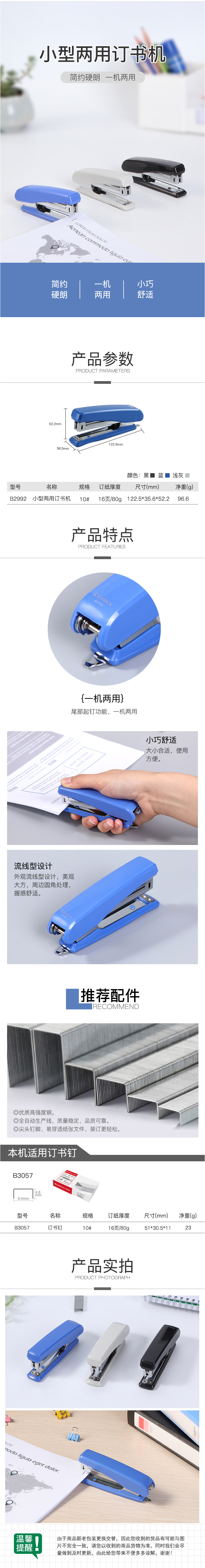 商品名称:【满49包邮】齐心 B2992 小型强力耐用订书机 10#金属机