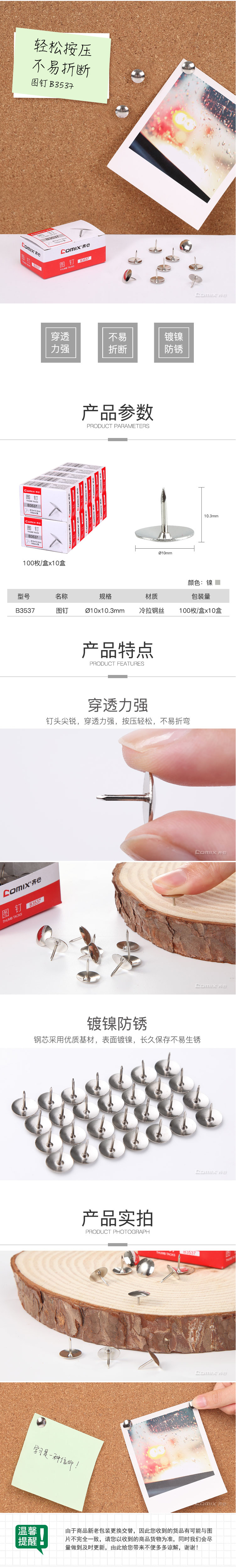 商品名称:【满49包邮】齐心 B3537 强力图钉