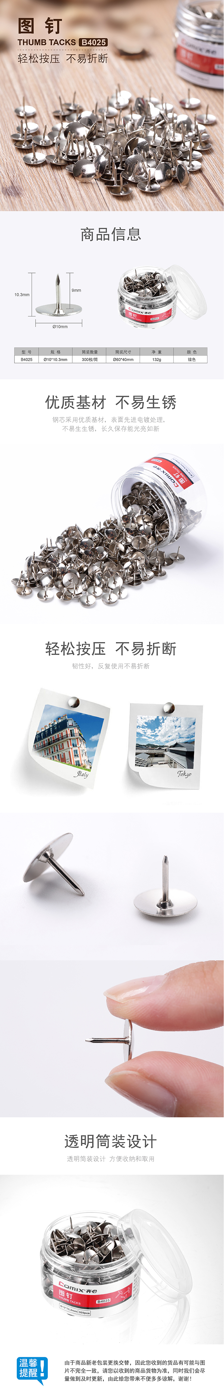 商品名称:【满49包邮】齐心 B4025 图钉 (Ø10*10.3mm)