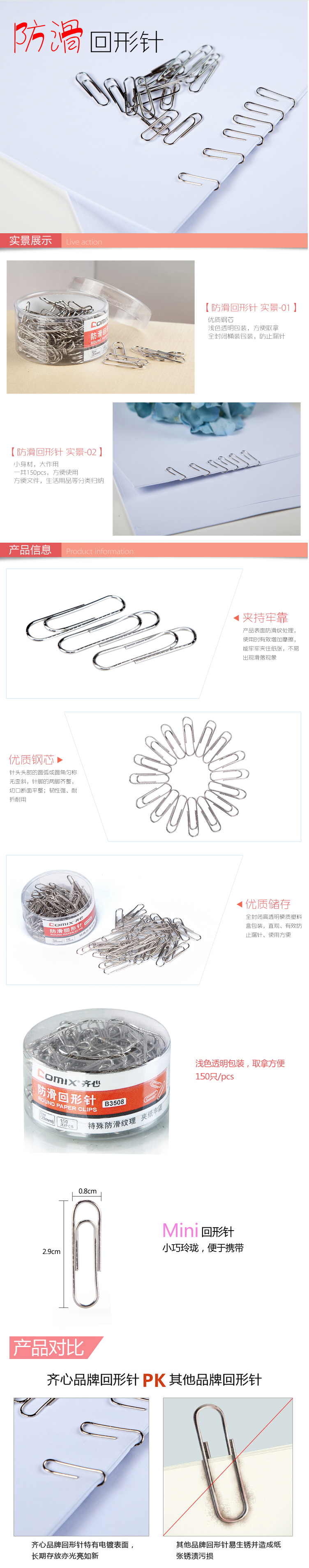 商品名称:【满49包邮】齐心 B3508 防滑回形针