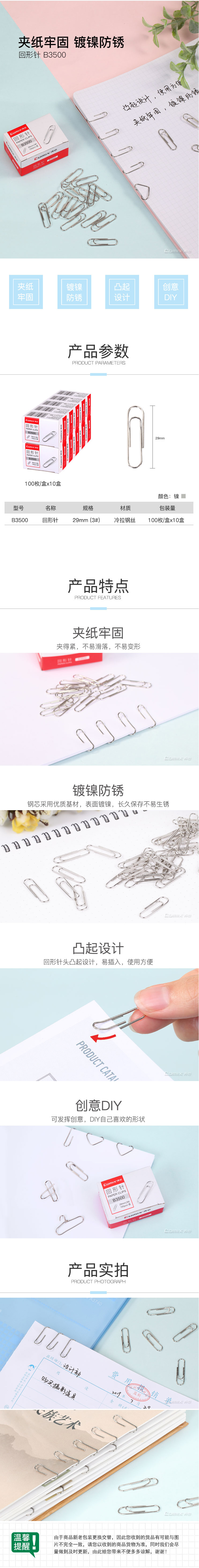 商品名称:【满49包邮】齐心 B3500 回形针 29mm 100枚/盒
