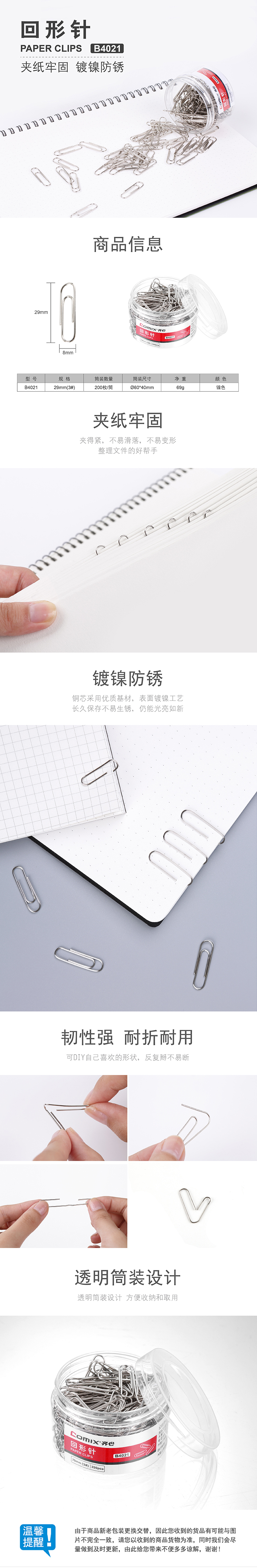 商品名称:【满49包邮】齐心 B4021 回形针 (3#29mm)
