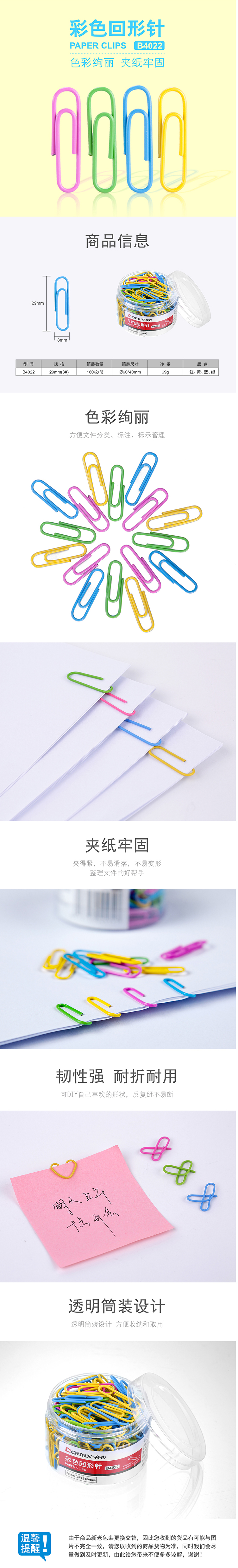 商品名称:【满49包邮】齐心 B4022 彩色回形针 (3#29mm)