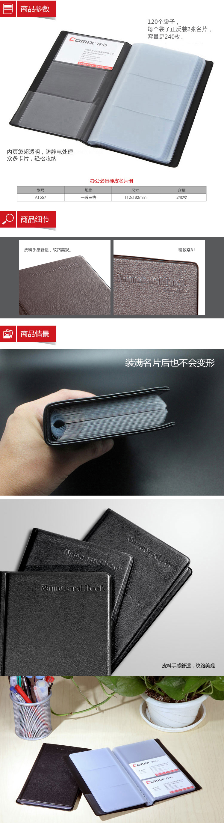 商品名称:【满49包邮】齐心 A1557 办公必备硬皮名片册 240枚