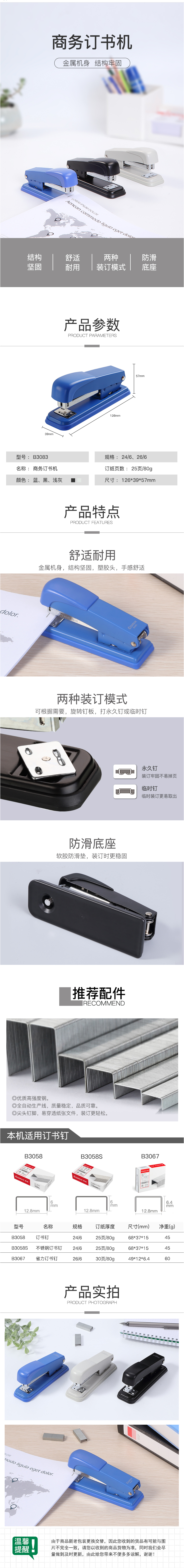 商品名称:【满49包邮】齐心 B3083 耐用订书机 12#金属机