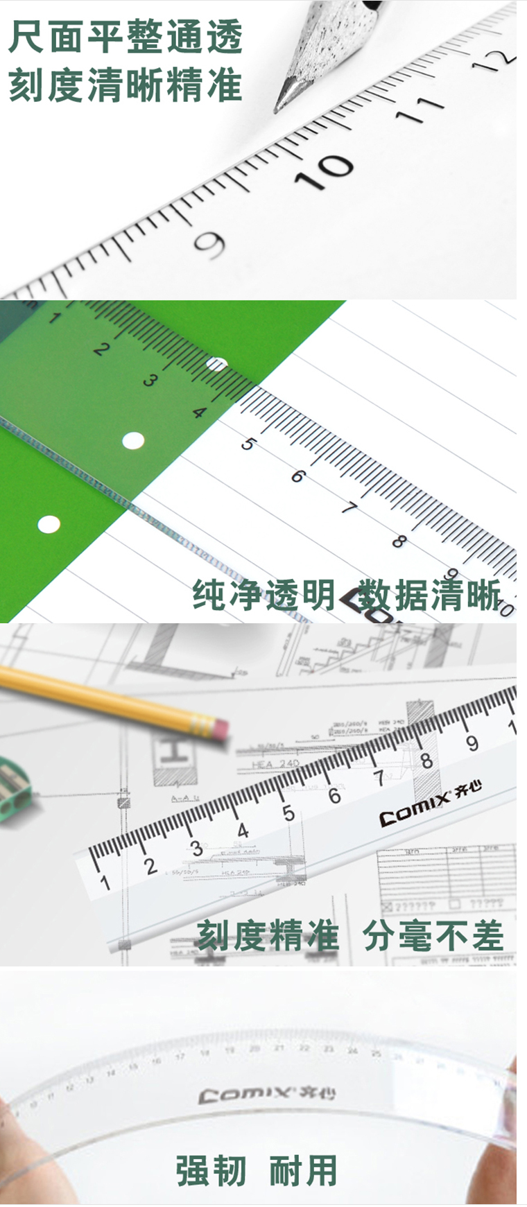 > 【满49包邮】齐心 B3252 精准刻度直尺 40CM