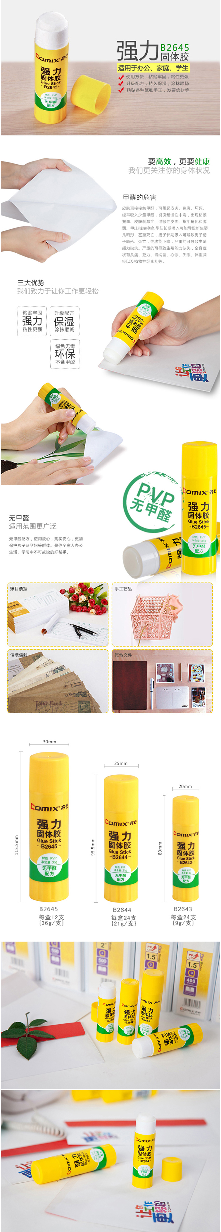 商品名称:【满49包邮】齐心 B2645 强力PVP固体胶胶棒 36g
