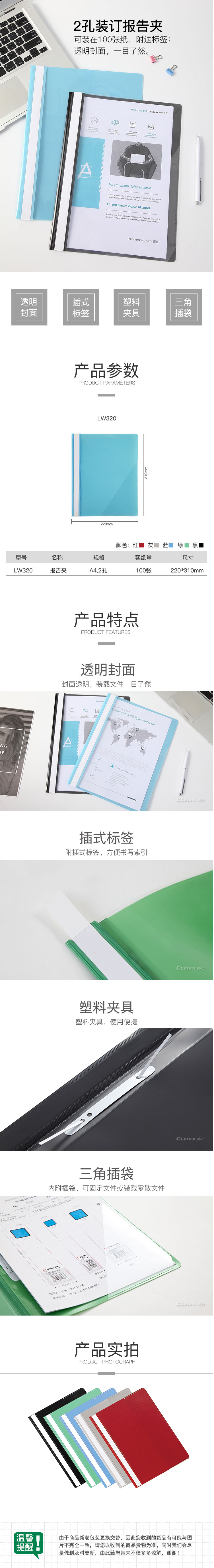 商品名称:【满49包邮】齐心 LW320 办公必备大容量报告夹 A4 2孔装订式 100张