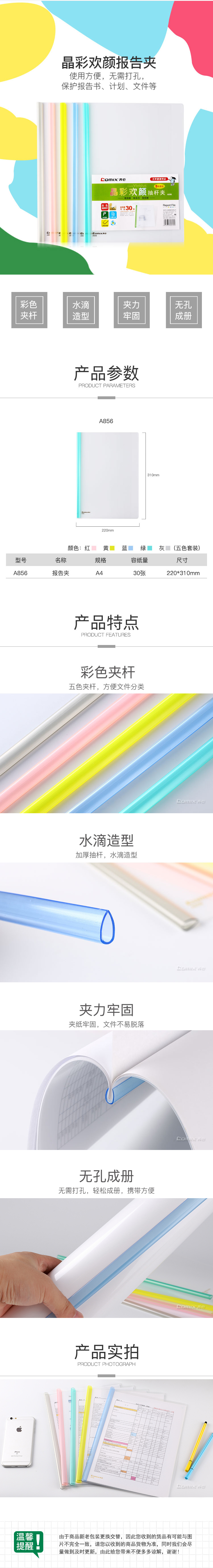 商品名称:【满49包邮】齐心 A856 晶彩欢颜报告夹 A4 抽杆式抽杆夹 30张 五色套装