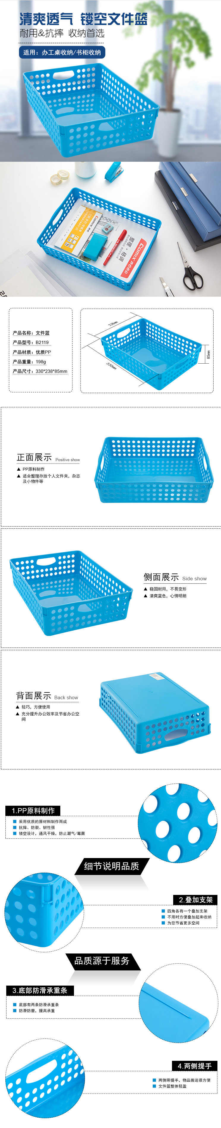商品名称:【满49包邮】齐心 B2119 文件篮 A4