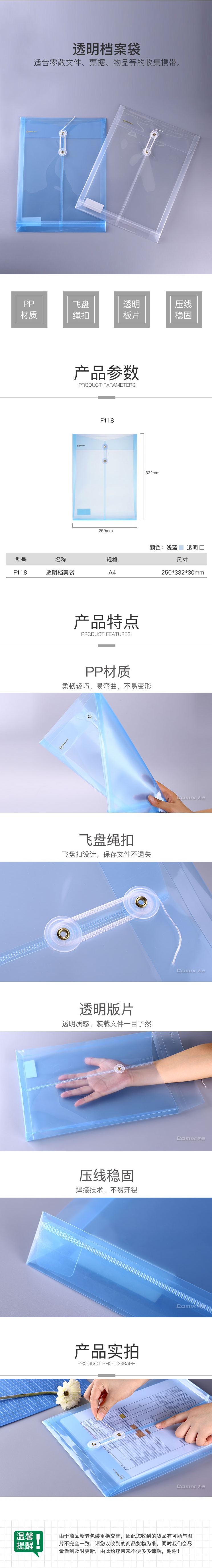 商品名称:【满49包邮】齐心 F118 办公必备透明档案袋 A4 绳扣式