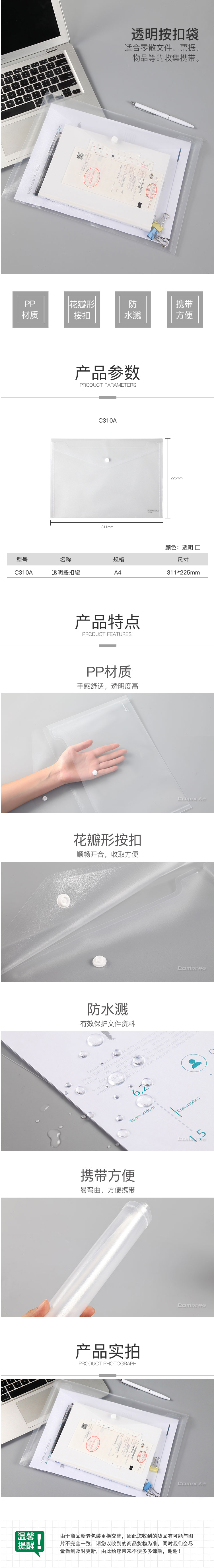 商品名称:【满49包邮】齐心 C310A 防反光 按扣文件袋 A4 10个/套