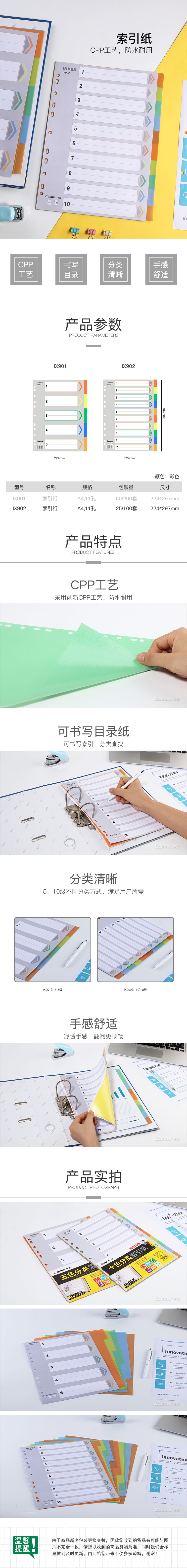 商品名称:【满49包邮】齐心 IX902 易分类 十色索引纸 A4 11孔 PP