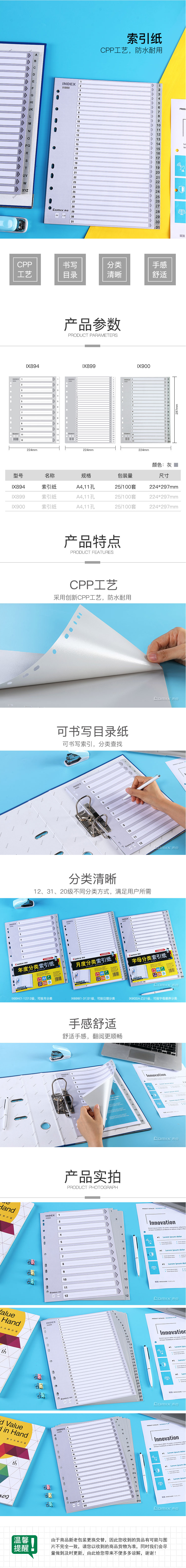 > 【满49包邮】齐心 IX894 易分类 年度索引纸 A4 12页1-12 11孔 PP
