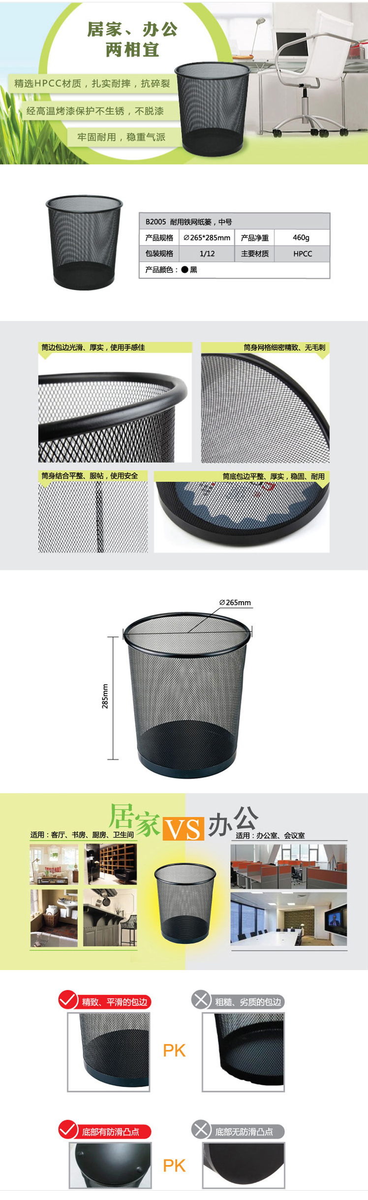 商品名称:【满49包邮】齐心 B2005 垃圾桶耐用铁网圆纸篓 中号