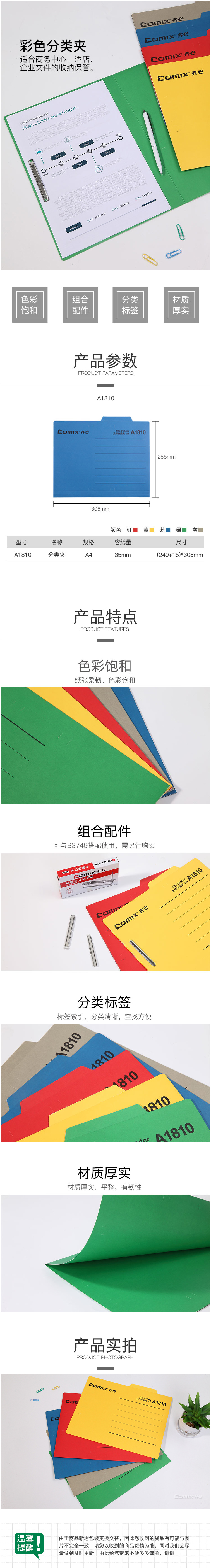 商品名称:【满49包邮】齐心 A1810 易分类分类夹 A4 纸质 400PCS/件