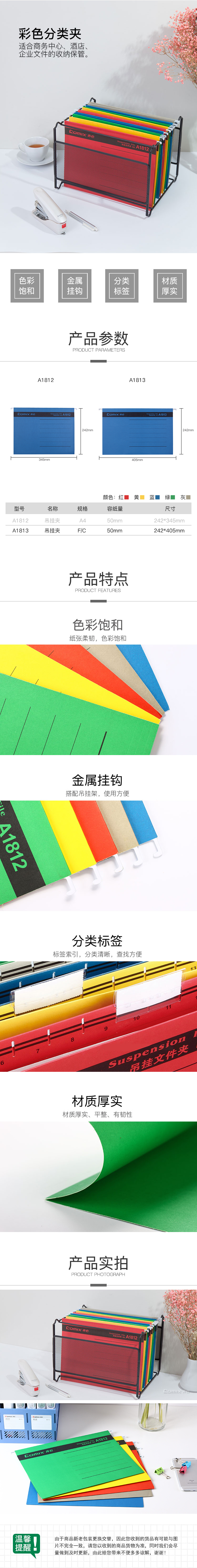 商品名称:【满49包邮】齐心 A1813 易查找吊挂夹 F/C 纸质