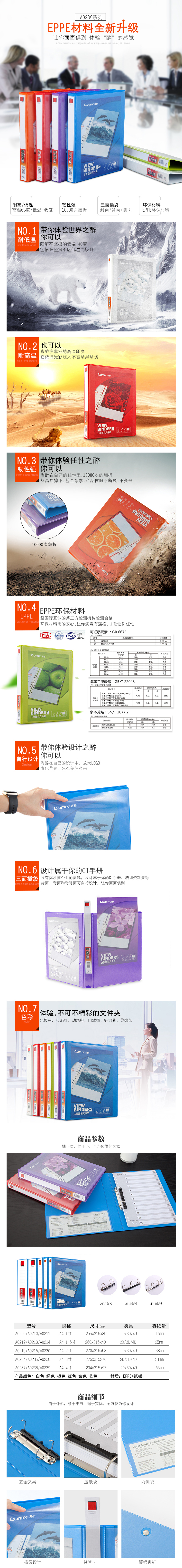商品名称:【满49包邮】齐心 A0236 易展示 美式三面插袋文件夹 A4 3寸4孔D型夹
