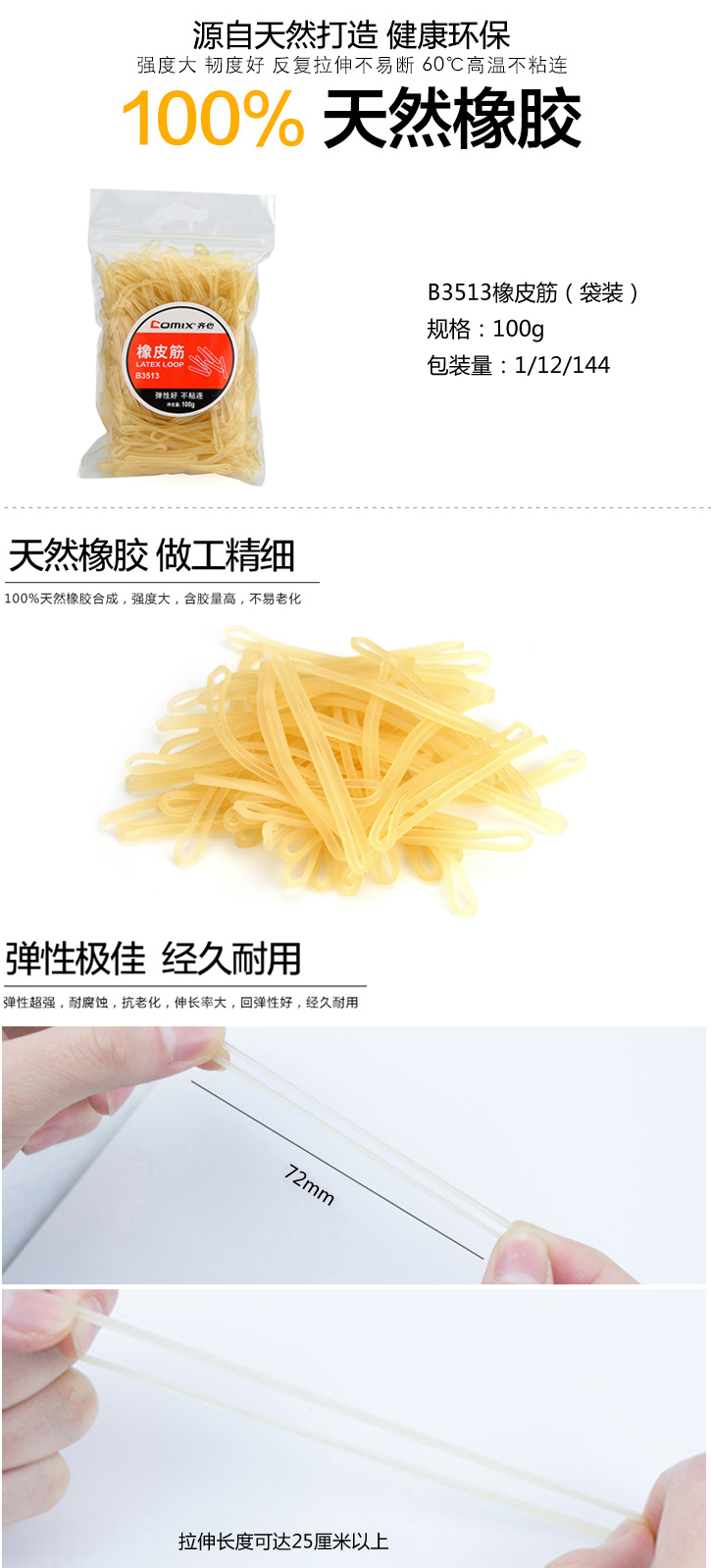 商品名称:【满49包邮】齐心 B3513 橡皮筋 100g