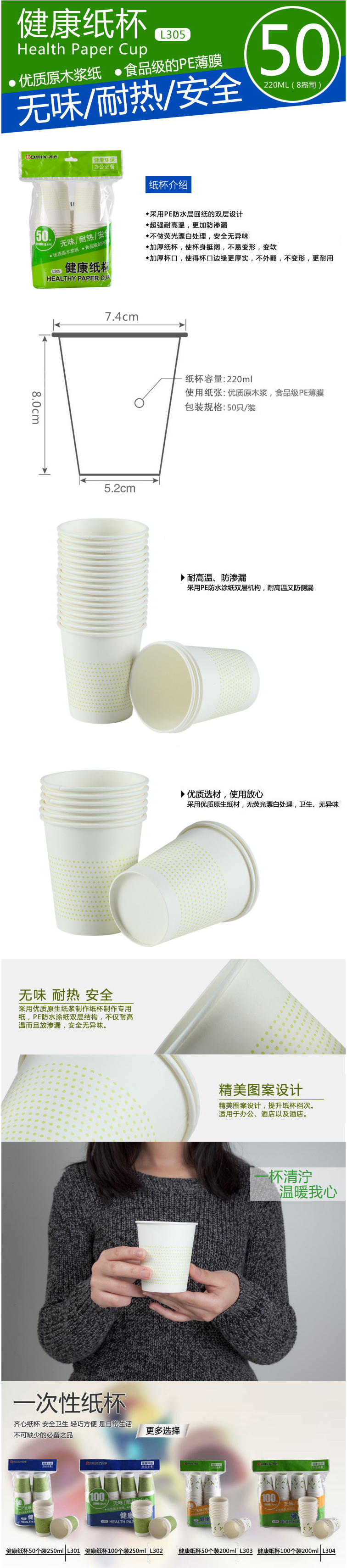 商品名称:【满49包邮】齐心 L305 健康纸杯50个装8安