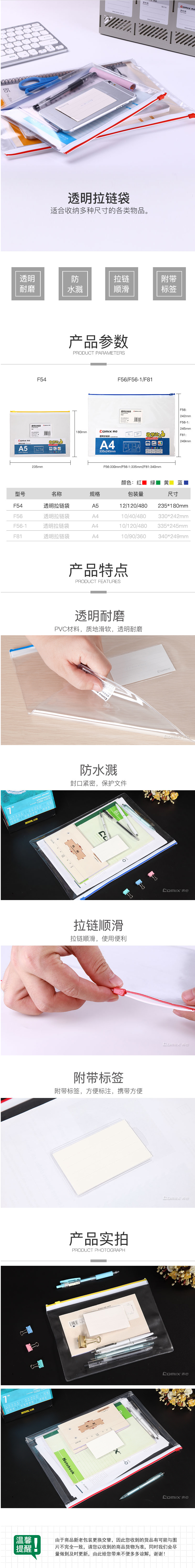 商品名称:【满49包邮】齐心 F54 办公必备拉链袋 A5