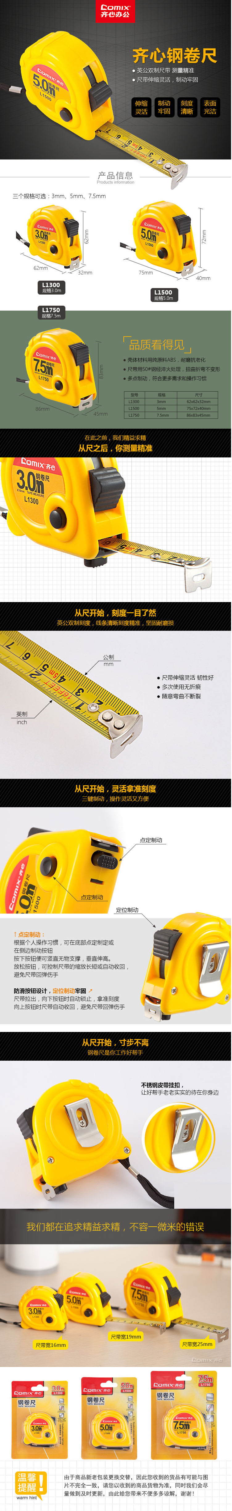 商品名称:【满49包邮】齐心 L1300 钢卷尺 3m