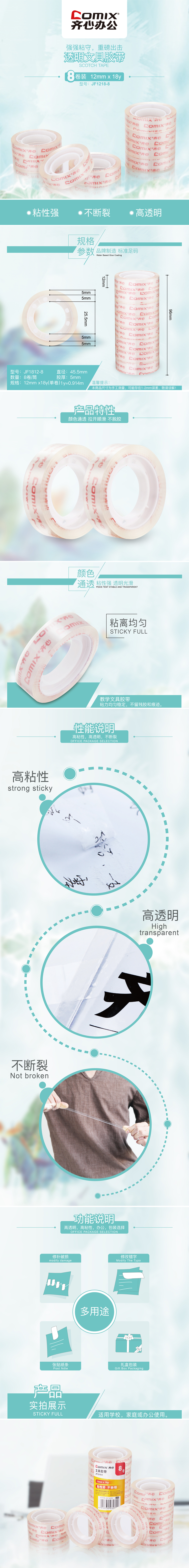 商品名称:【满49包邮】齐心 JF1218-8 超透文具胶带 8卷/筒 12mm*18y