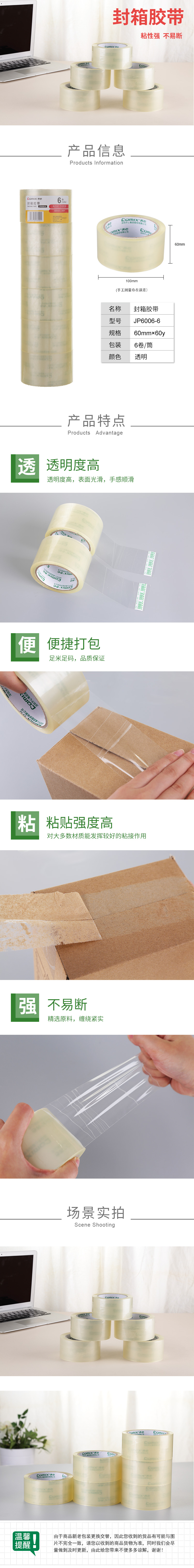 商品名称:【满49包邮】齐心 JP6006-6 封箱胶带 6卷装