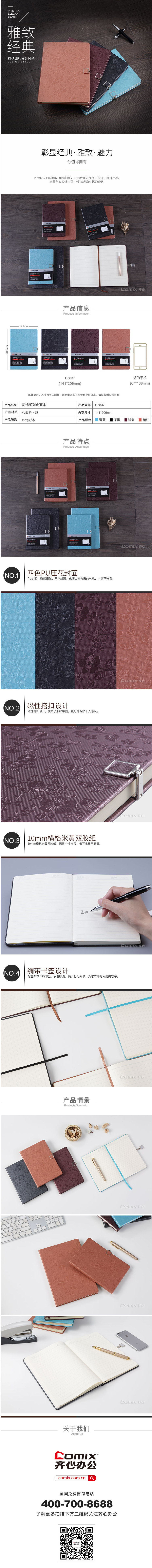 商品名称:【满49包邮】齐心 C5837 花锦系列磁扣皮面笔记本 25K 122张