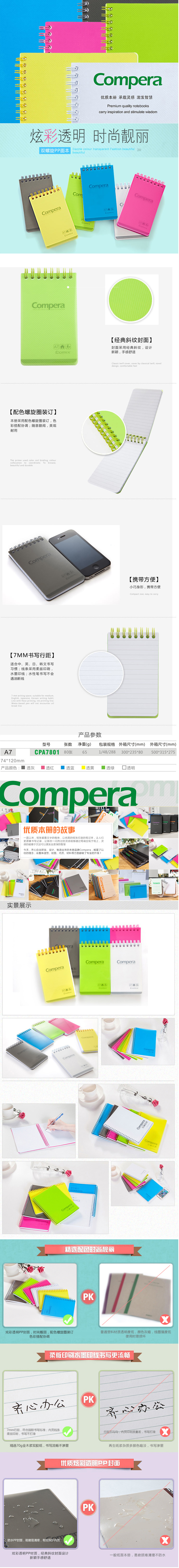 商品名称:齐心 CPA7801 Compera 双螺旋PP面本 A7 80张笔记本