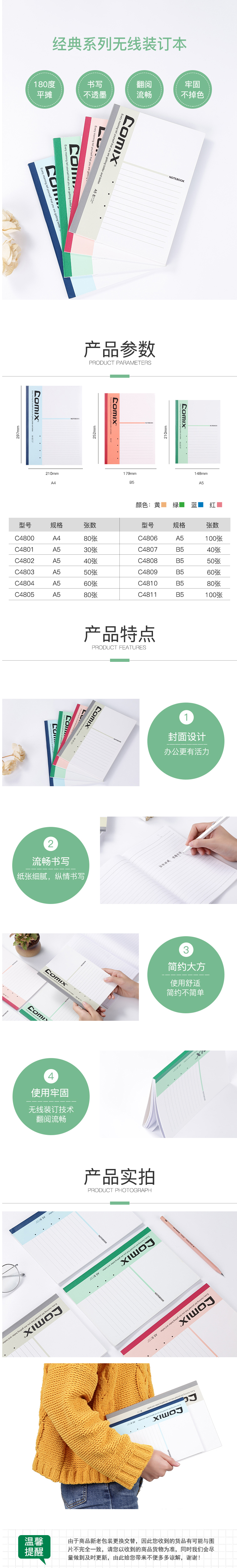 商品名称:【满49包邮】齐心 C4801 经典系列无线装订本 A5 30张笔记本软面抄软抄本