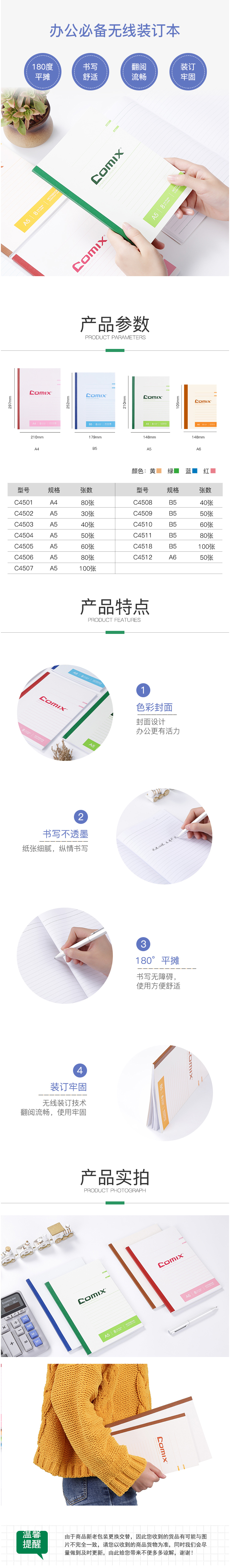 商品名称:【满49包邮】齐心 C4510 办公必备无线装订本 B5 60张软抄本软面抄笔记本