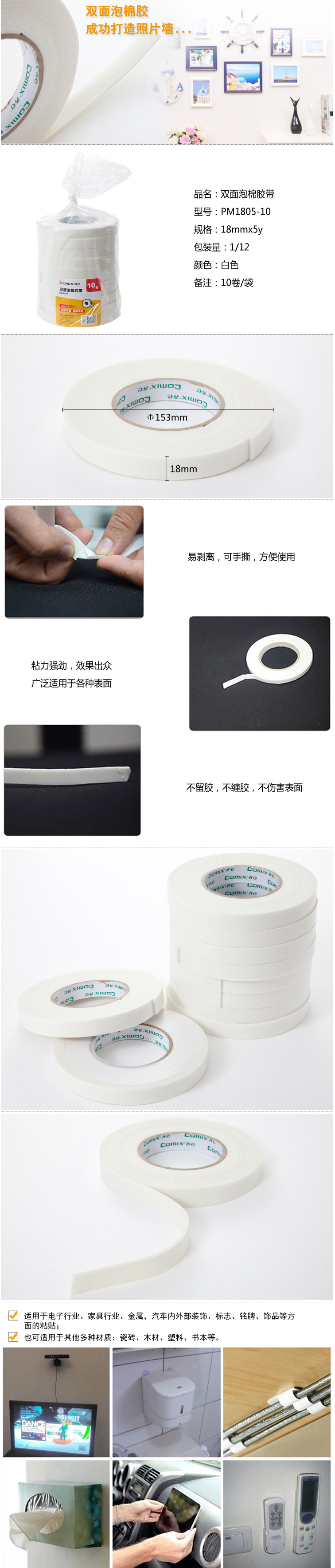 商品名称:【满49包邮】齐心 PM1805-10 双面泡棉胶带 10卷/筒 泡沫胶