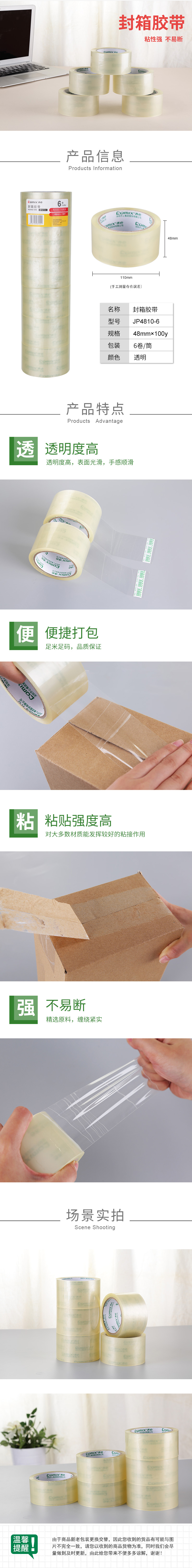 商品名称:【满49包邮】齐心 JP4810-6 普透封箱胶带 6卷/筒 48mm*100y 6卷装