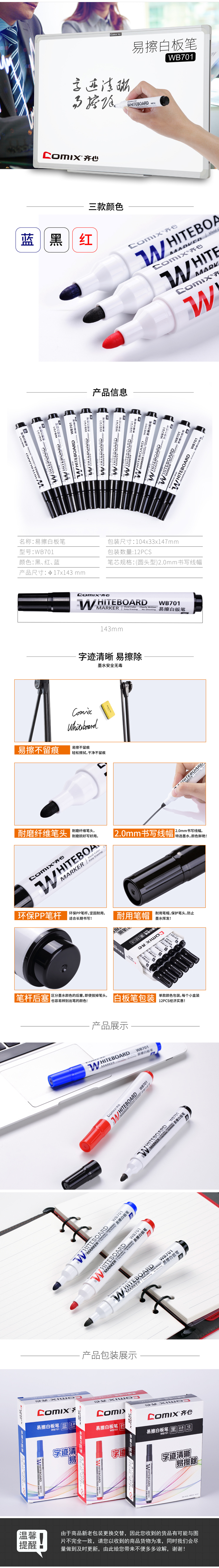 商品名称:【满49包邮】齐心 WB701 易擦白板笔
