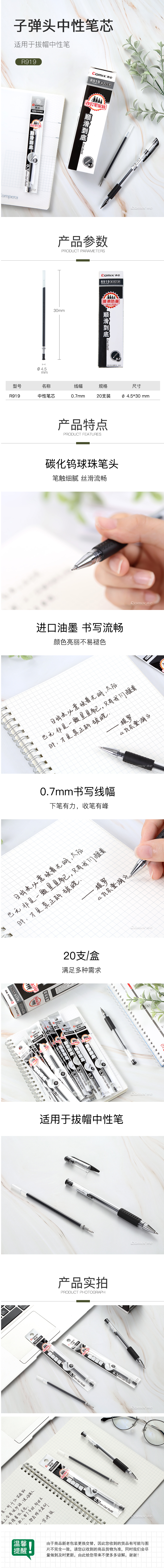 商品名称:【满49包邮】齐心 R919 中性笔芯替芯0.7mm 商务专用