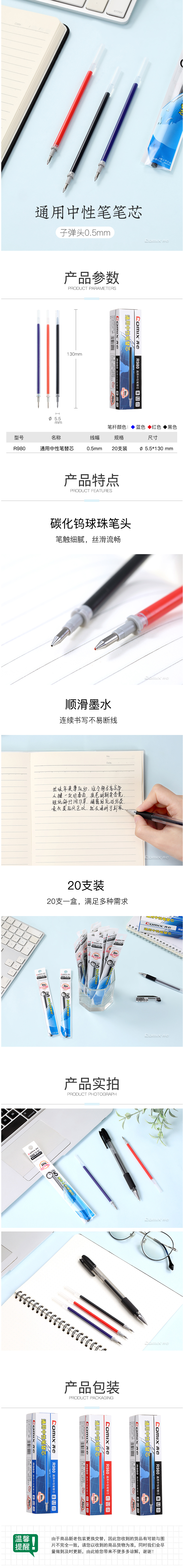 商品名称:【满49包邮】齐心 R980 通用中性笔芯替芯0.5mm