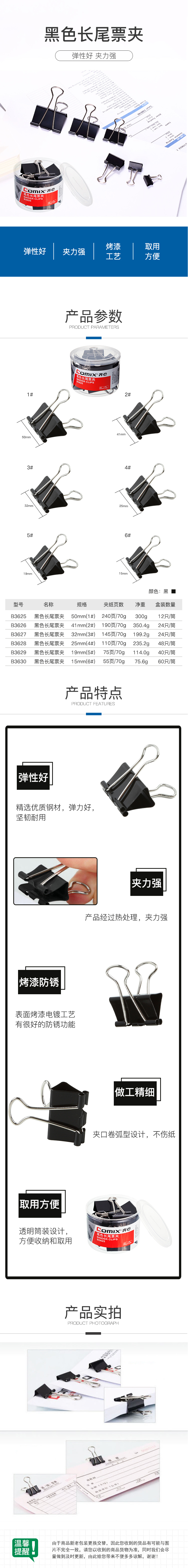 商品名称:【满49包邮】齐心 B3627黑色长尾夹票夹 3# 32mm 24只/筒