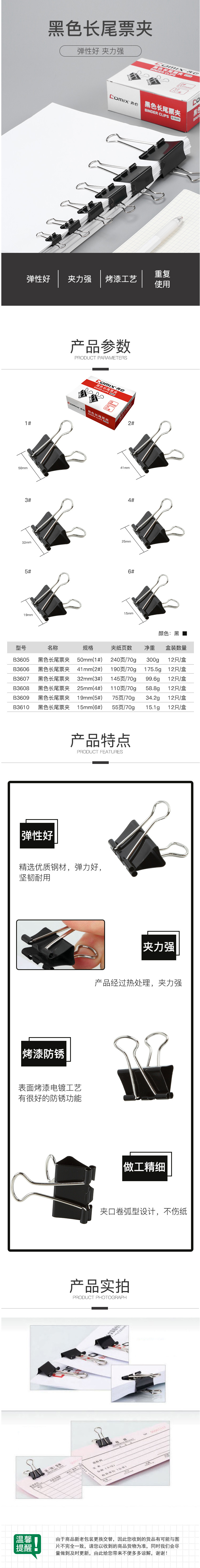 商品名称:【满49包邮】齐心 B3609黑色长尾夹票夹 5# 19mm 12只/盒