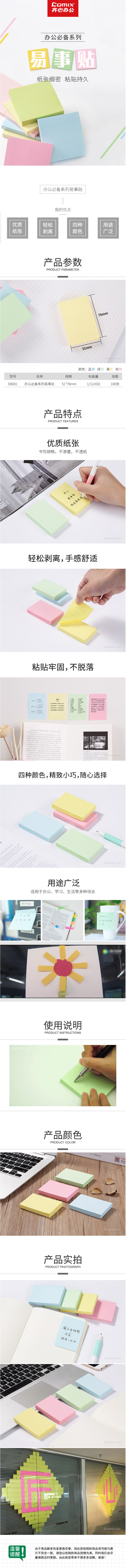 商品名称:【满49包邮】齐心 D6001 办公必备系列易事贴 2X3英寸告示贴