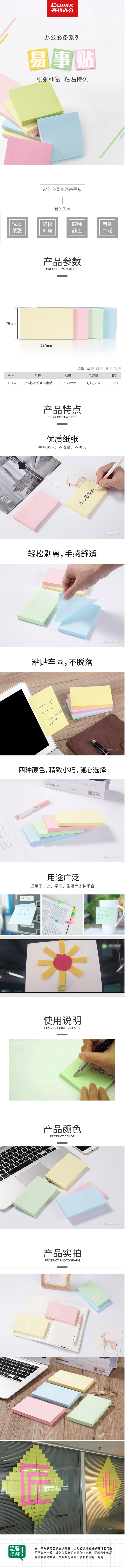 商品名称:【满49包邮】齐心 D6004 办公必备系列易事贴 3X5英寸告示贴