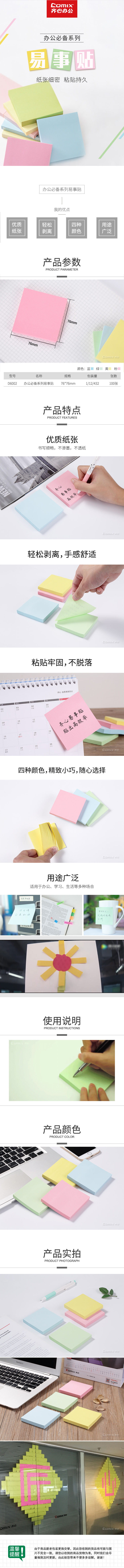 商品名称:【满49包邮】齐心 D6002 办公必备系列易事贴 3X3英寸告示贴