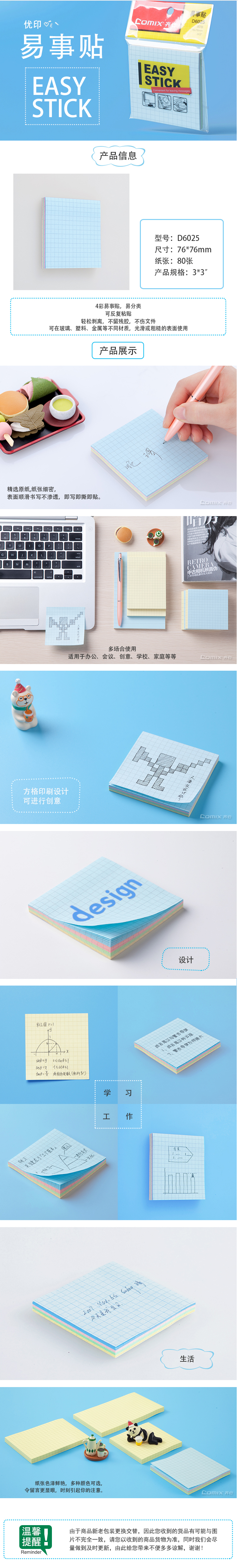 商品名称:【满49包邮】齐心 D6025 方格易事贴 3*3 80张告示贴